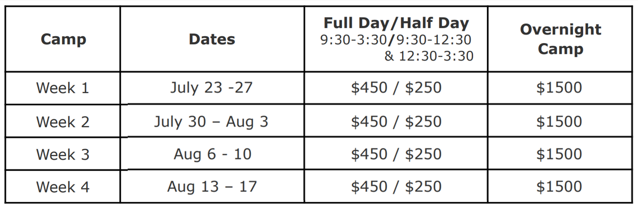 There is a $50 for full day or $25 discount for siblings returning campers!