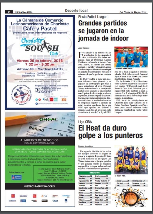 We look forward to hosting the Latin Chamber of Commerce for their monthly business networking meeting and exhibition match- all welcome! Registration at http://www.lacccharlotte.com”